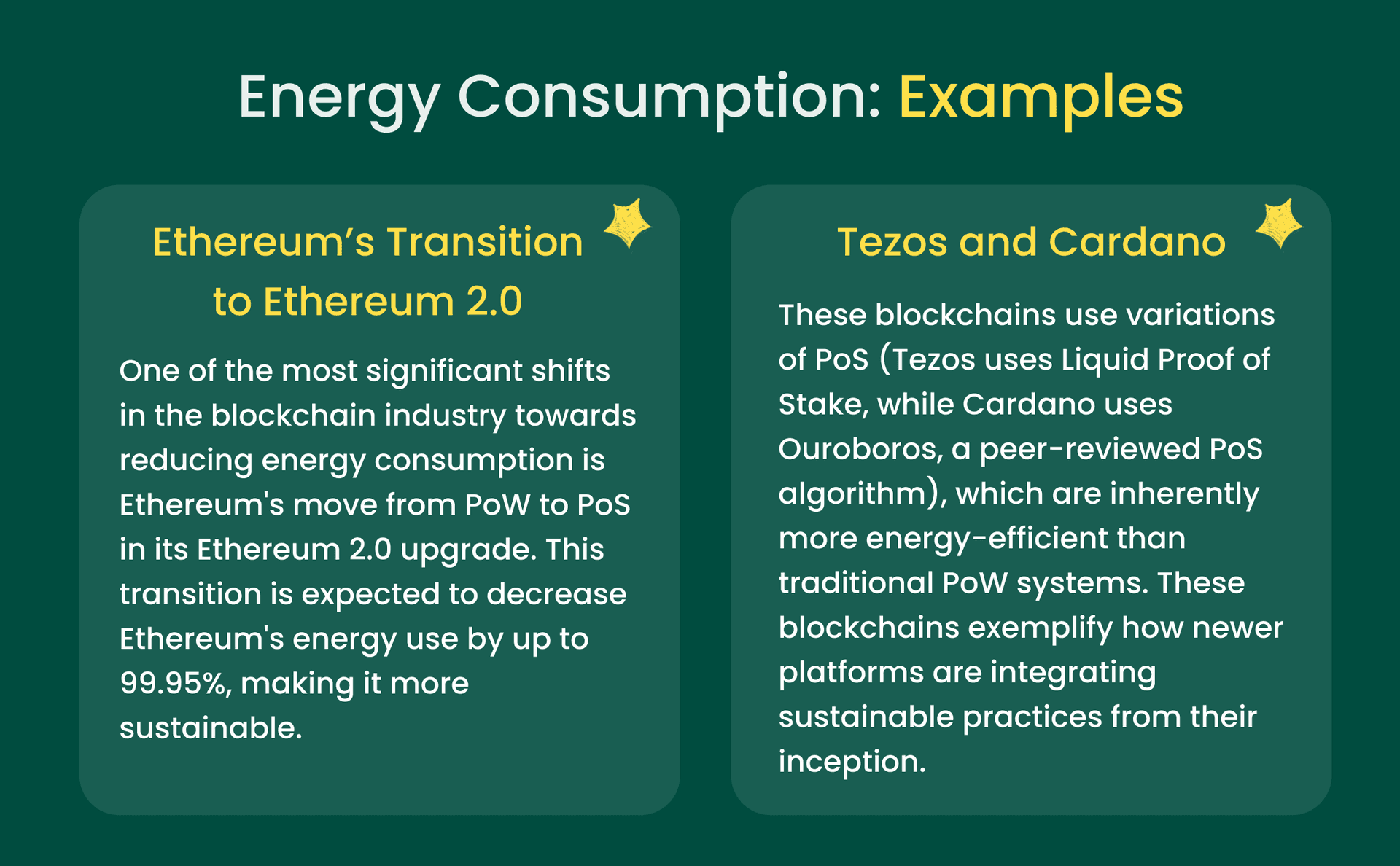The primary focus keeps on shifting from energy-intensive consensus mechanisms to more sustainable alternatives. The two main approaches are: