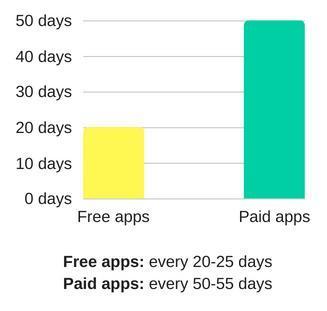 As you can see, free applications more often release updates. However, this is natural: in the end, a free application earns on paid features, in-app purchases, advertising... it forces mobile service owners to puzzle over the continual expansion of the app functionality, its improvement.