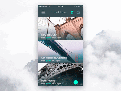 That is, this item on the list of animation types for mobile apps implies visual feedback. The application should contact the user, react to his actions: when pressed, the button changes color, the image is enlarged or moved to the side when swiping to the right or left, and so on.